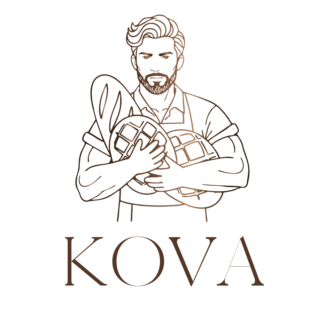 A KOVA egy általam megalkotott márka, amely egy kézműves szemléletű pékség vizuális világát mutatja be. A név a kovászra utal, ami a márka filozófiáját is meghatározza: minőség, szakértelem és időtállóság. Az arculat kialakításakor a tradicionális pékségek hangulatát ötvöztem egy kicsit karakteresebb vizuális megjelenéssel. A logó központi eleme a pék figura, amely az emberi munkát és a kézzel készített termékek értékét hangsúlyozza. A projekt fiktív, az arculattervezési gondolkodás és a márkaépítési folyamat bemutatására készült.